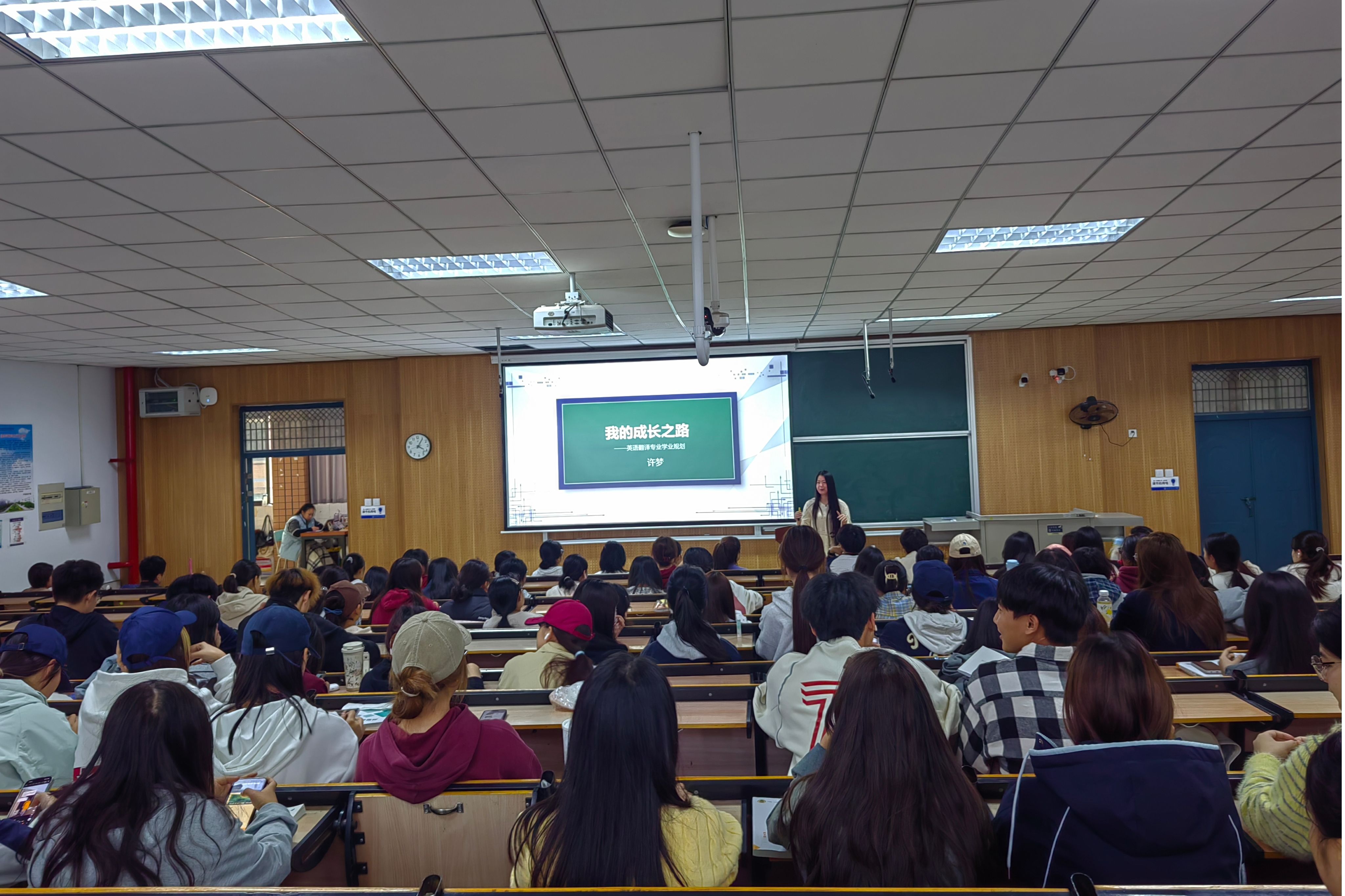 此次讲座邀请外国语学院翻译专业2018届优秀校友、新西兰惠灵顿维多利亚大学博士在读生许梦作题为《我的成长之路——英语翻译专业学业规划》的报告。外国语学院相关专业教师及大一全体学生参加。