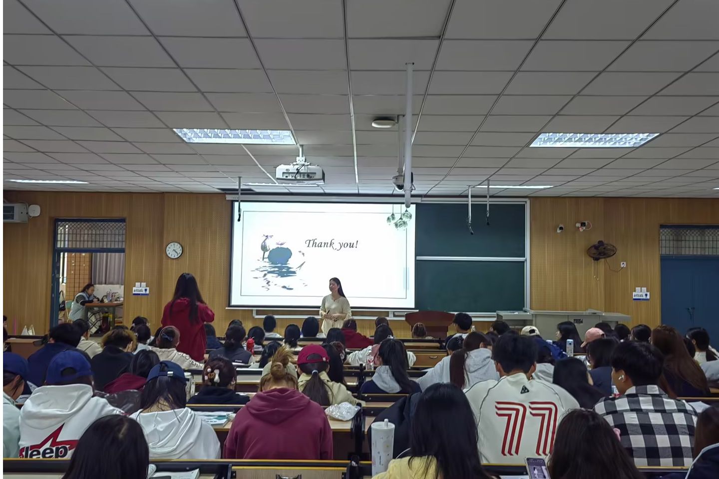 许梦与同学们分享了其大学期间的英语专业知识学习、社团活动和学业规划。她建议同学们尽早确定自己的目标,并以目标为导向做好规划,在校期间参加社团活动和社会实践活动,提升自己的综合能力,并考取专业资格证书,为未来就业和升学打下坚实的基础。在互动环节,同学们热情满满,踊跃提问,许梦结合自己的经验就听力技能提升、雅思考试、国外留学申请手续等问题一一作了认真解答。同时,她也表达了对同学们深切的祝福与期望,希望同学们能够在大学四年的学习生活中收获成快乐和成长。