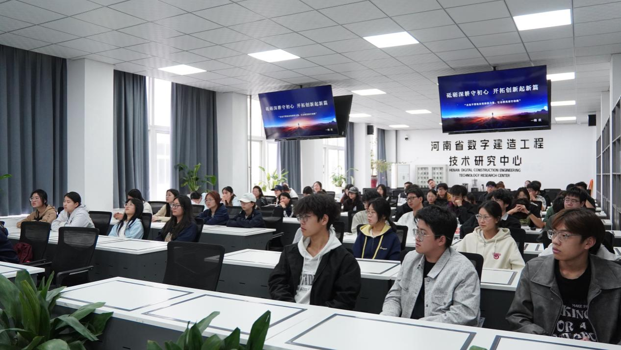 报告中,郭渊冬结合自身一线实践经历,围绕行业政策、关键技术、典型案例、个人成长四个维度展开分享。他系统解读水利工程数字化转型政策导向,深入讲解数字孪生、BIM、智能监测等核心技术在水利工程全生命周期的应用要点,结合南水北调等国家级重大工程案例,生动展现数字化技术破解工程建设难题、提升建设管理效能的实践路径,并分享个人职业成长历程,为在场学子规划学业、提升能力、对接行业需求提供务实指导,助力大家拓宽专业视野、紧跟行业前沿、增强创新与实践能力。
