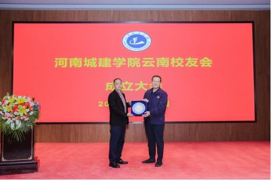 杜青山代表昆明理工大学校友总会向河南城建学院云南校友会赠送纪念品,张国勇代表河南城建学院云南校友会接受纪念品。随后,杜青山结合自身丰富的校友工作实践经验,分享了校友联络、组织建设、活动开展等校友会建设与运营经验。