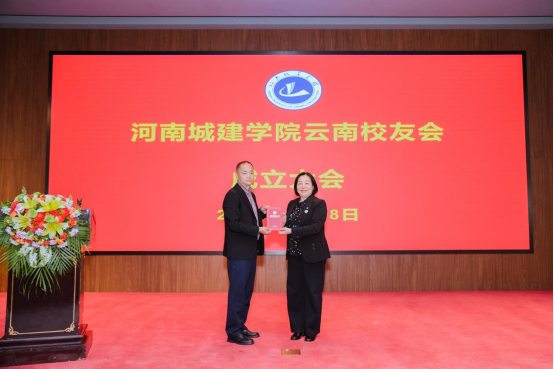 毛艳丽为云南校友会授牌,并为第一届理事会会长颁发聘书,宋帅奇为副会长颁发聘书,杨毅为秘书长颁发聘书,朱凯、焦学然、孙方行为理事会其他理事颁发聘书,张国勇为副秘书长颁发聘书。