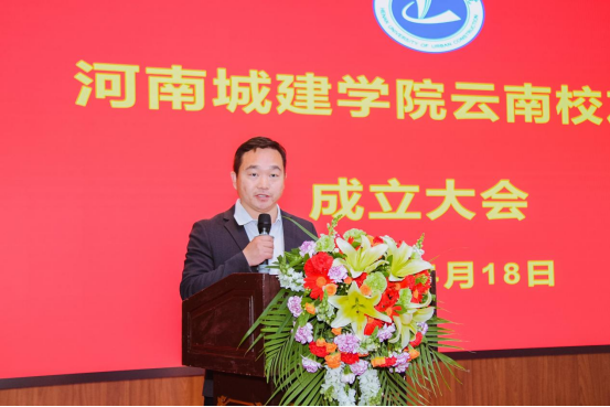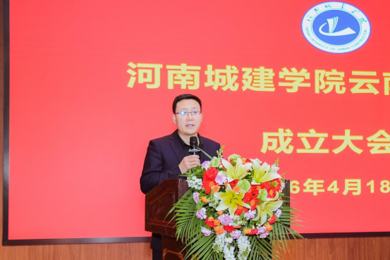 4月18日下午,河南城建学院云南校友会成立大会在昆明市云南滇池温泉花园国际大酒店国际会议中心会议厅举行。副校长毛艳丽出席会议并致辞。昆明理工大学校友工作办公室主任、校友总会秘书长杜青山,昆明理工大学教授、云南云金地科技有限公司董事长赵俊三,云南云金地科技有限公司副总经理张金,长安大学云南校友会会长杨贵良、副秘书长郑晨光、副秘书长薛俊受邀参加会议。我校发展规划处处长李爱增,科学技术处处长张大力,社会合作与校友工作办公室主任宋帅奇,智能建造与交通工程学院院长朱凯,市政与环境工程学院党委书记焦学然,城市规划与建筑设计学院党委书记孙方行,校友总会秘书长、社会合作与校友工作办公室副主任杨毅,智能建造与交通工程学院副院长屈讼昭,经济与管理学院副院长殷许鹏,时空信息工程学院教师代表李军杰,天津校友会会长李涛,上海校友会会长吴函,重庆校友会会长丁雪峰,四川校友会会长李航,陕西校友会副会长张保勋、胡飞飞,郑州校友会副会长张卫华,贵州校友会筹备组代表欧阳章伟、田仁品,以及云南80余位校友代表参加会议。会议由云南校友会筹备组成员马莹露主持。