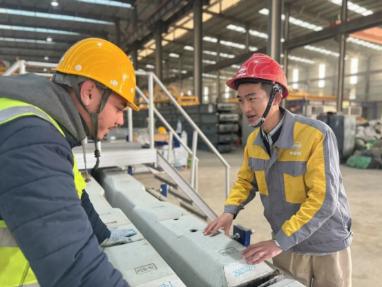 他的复合型能力,在项目攻坚中转化为实实在在的生产力。在阿尔及利亚,他牵头组建“战沙青年突击队”,凝聚老中青攻坚合力。团队成功解决“枕中瘦腰”等关键技术难题,并创新出“三级降温”工艺,将混凝土脱模时间缩短约30%。“管理搭台,技术唱戏”的协同模式,爆发出惊人能量。项目实现了安全生产双零目标,创下最高日产能5200根(达设计值173%)的“沙漠奇迹”,整体工效达当地同类工厂的2.5倍。此前在老挝,他的高效保障与跨文化融合工作,为生产一线提供了坚实支撑,助力项目创造出月产80173根的行业高产纪录,提前75天完成全部轨枕供应任务,为中老铁路如期通车、项目荣获境外工程鲁班奖贡献了重要力量。